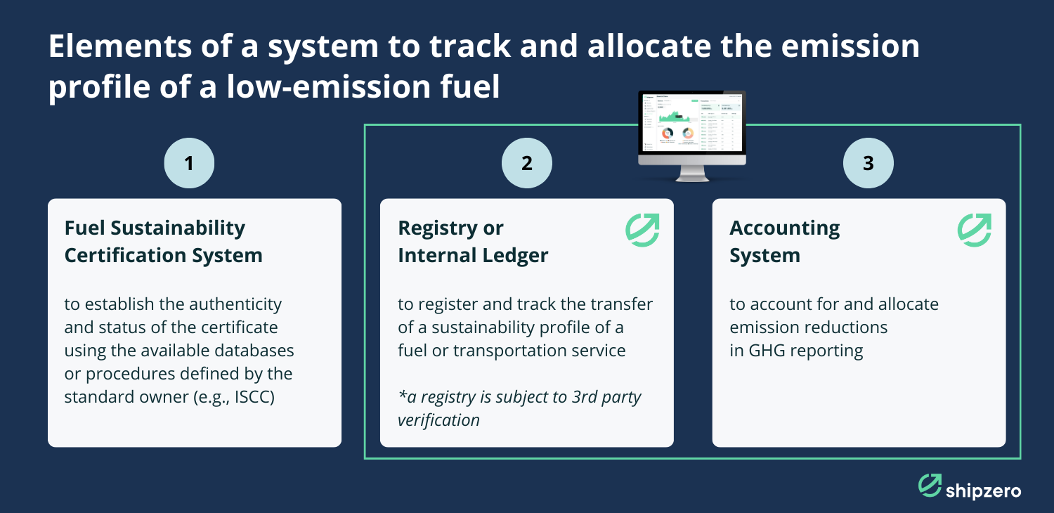 Our Claim Database requires completeness of input data like fueling events or low emission transportation services. Customers should provide proof of purchase and sustainability tracking for fuels, e.g., fuel cards, fleet management systems, and fuel product sheets.